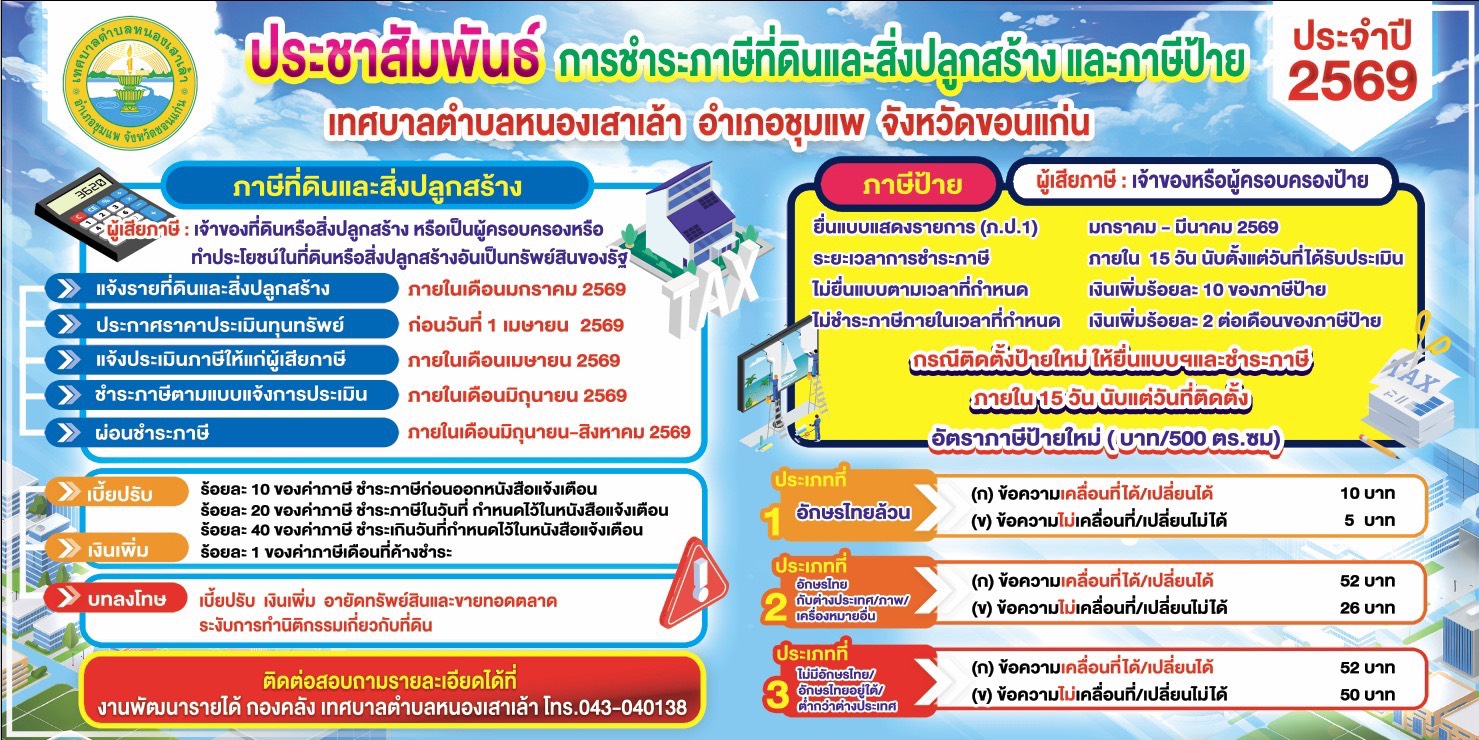 ประชาสัมพันธ์การชำระภาษีที่ดินและสิ่งปลูกสร้าง